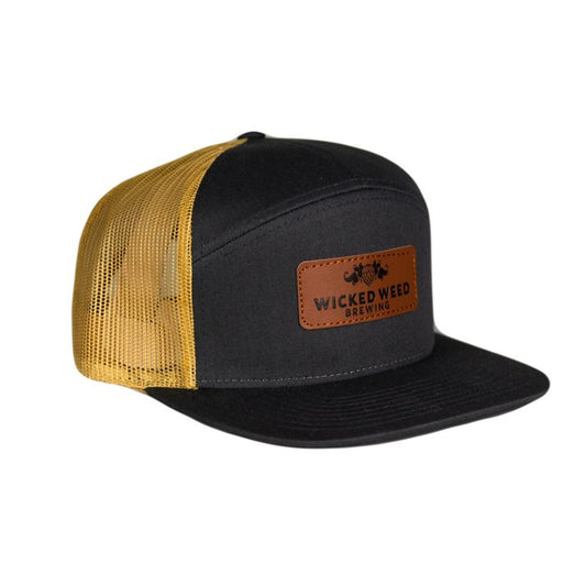Gold/Charcoal Leather Patch Hat